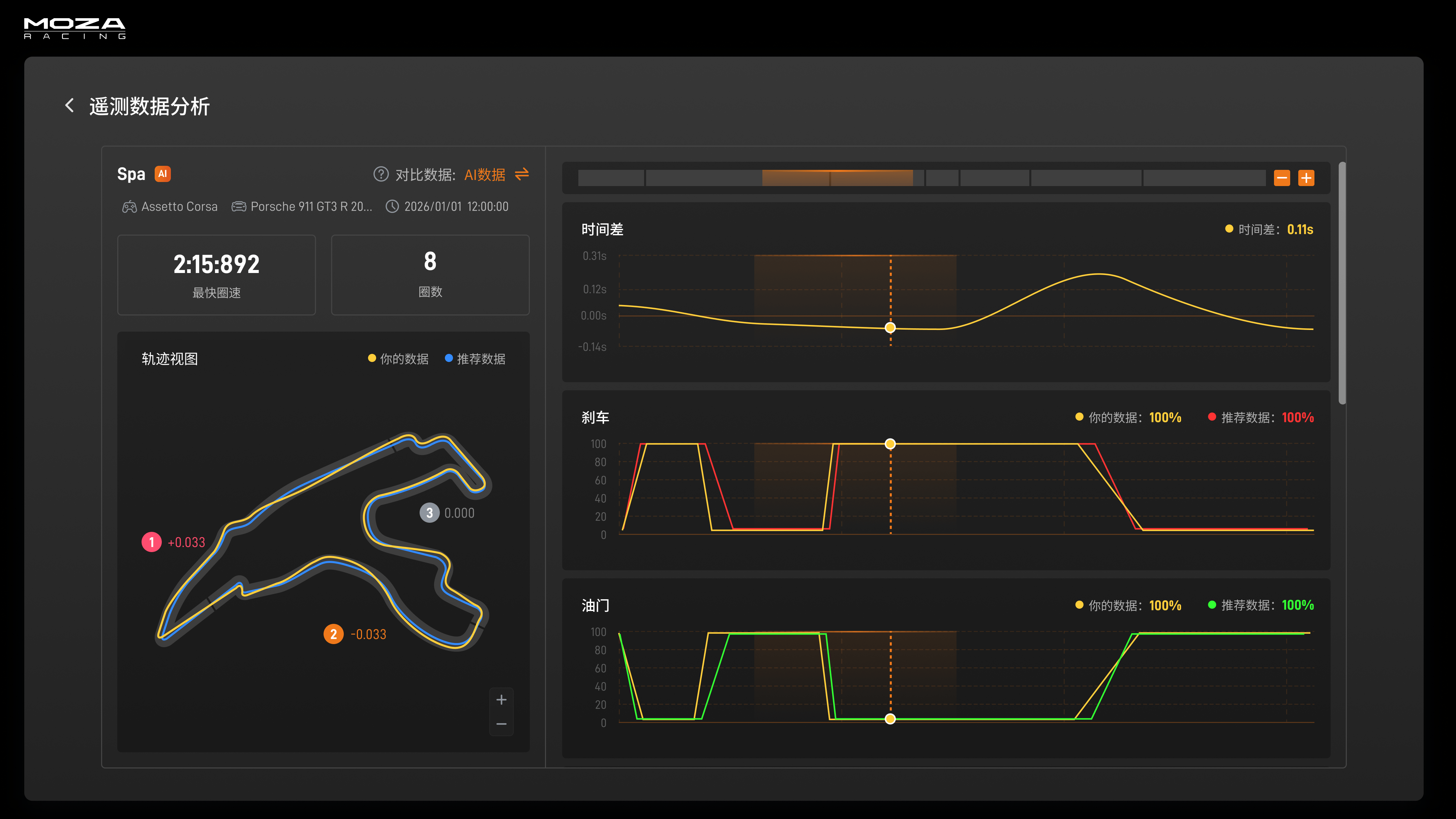 Racing Lab最大的冲破。AI会及时生成一套“最佳操做数据”,代表MOZA手艺取生态的再一次升级进化,